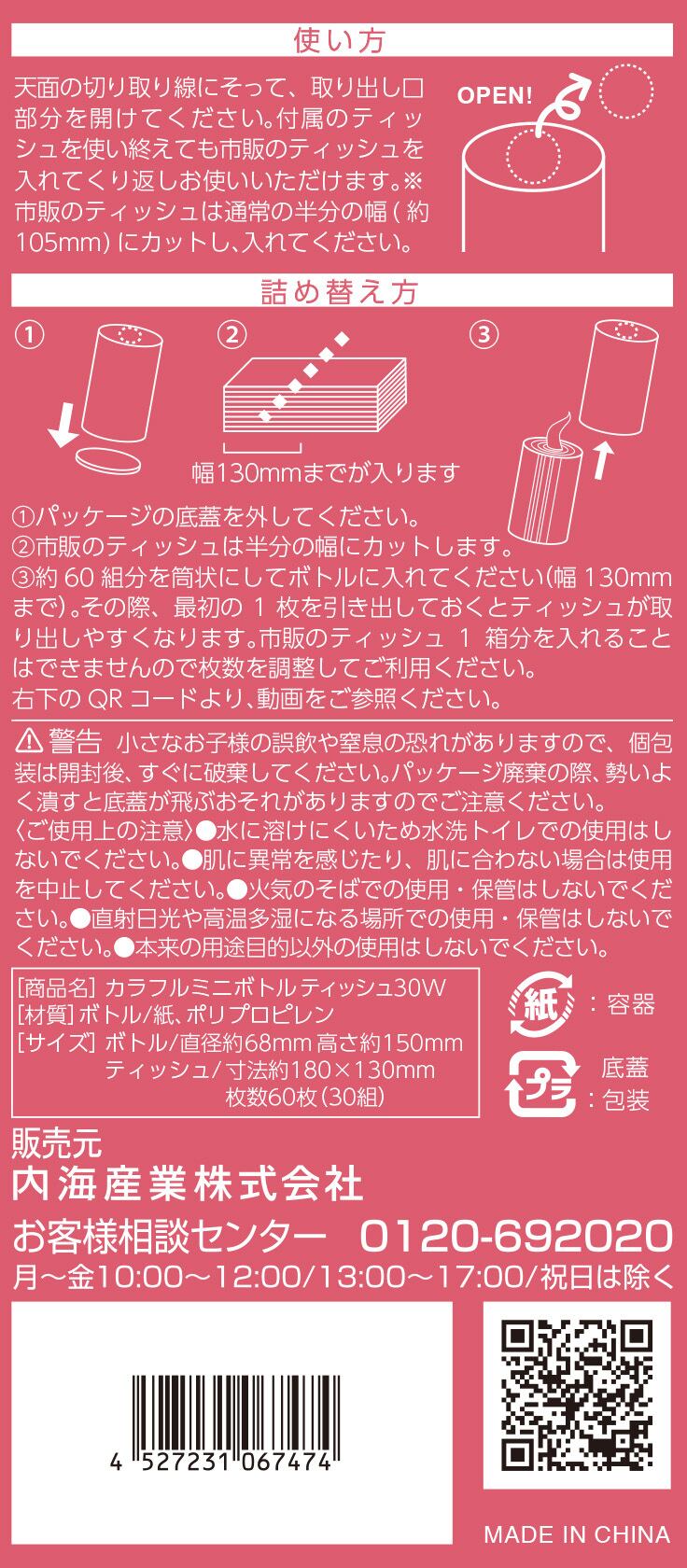 カラフル ミニボトルティッシュ30W(120×1カートン)