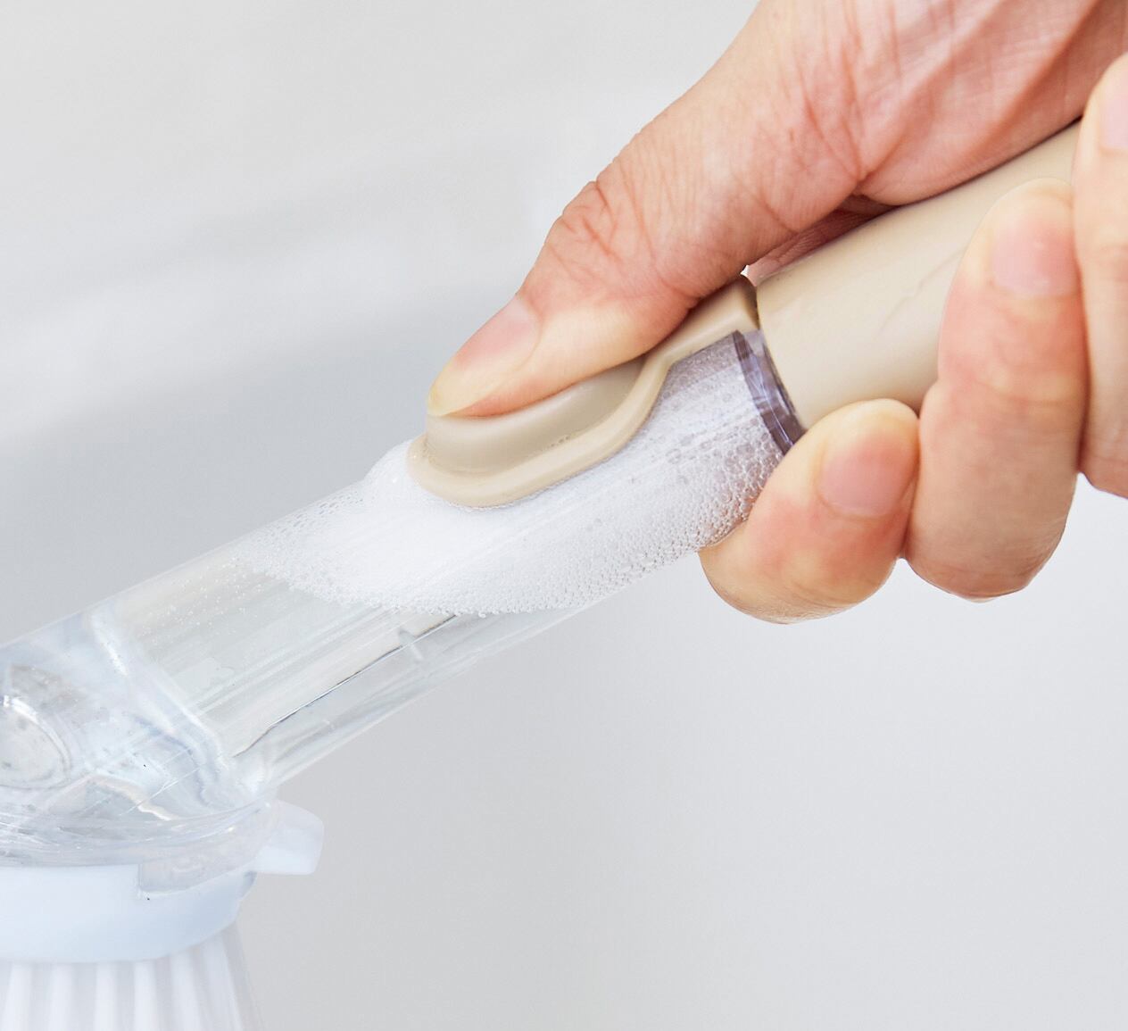 ボタンをプッシュ!でハンドル内に入れた洗剤が出てくる便利なお掃除ツール。