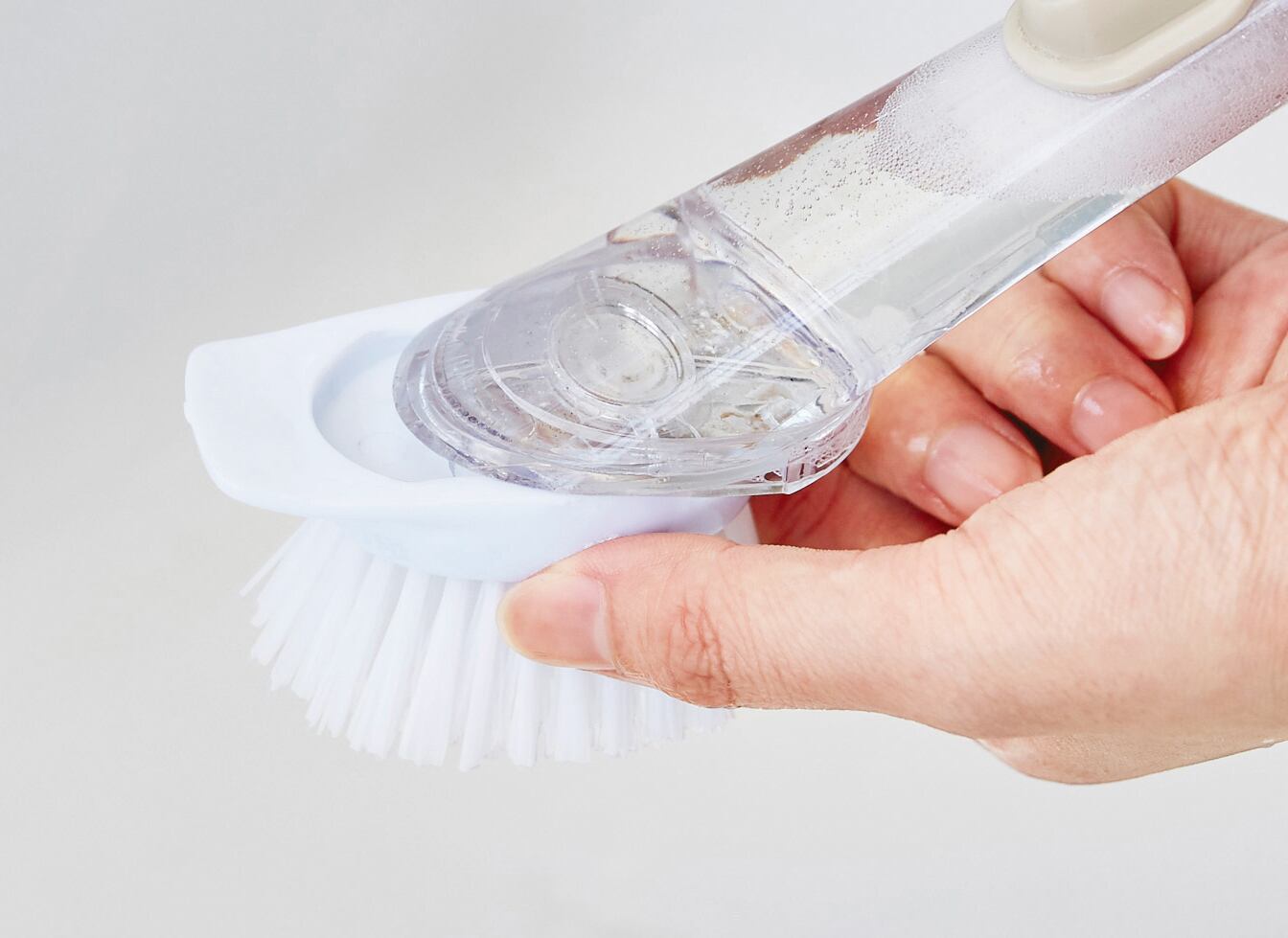 先端の付け替えもできるので、食器洗いはスポンジで、シンク掃除はブラシで、といった使い分けも可能です。ハンドルタイプなので極力水に濡れずに水仕事ができます。